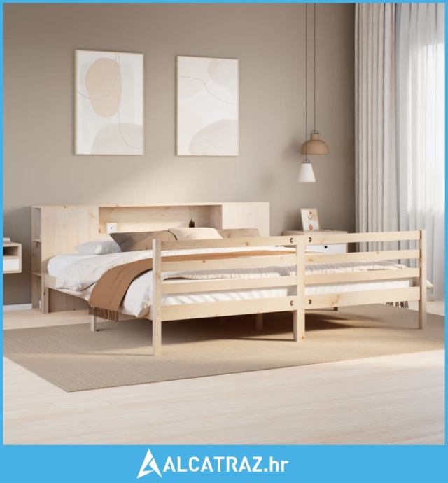 Krevet s regalom za knjige bez madraca 180x200 cm od borovine - NOVO