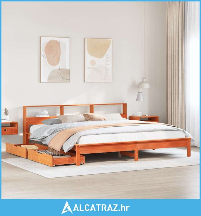 Krevet s regalom za knjige bez madraca 180x200 cm od borovine - NOVO