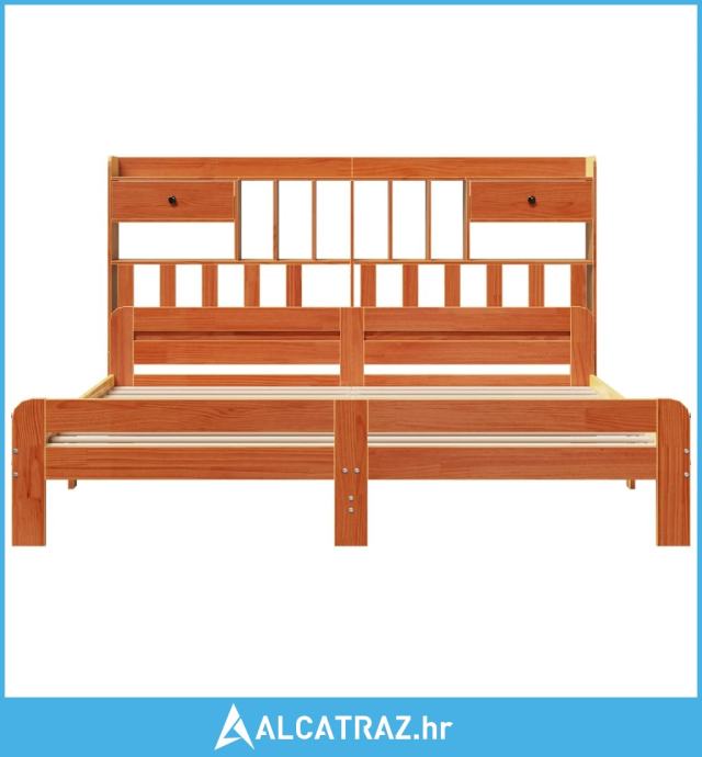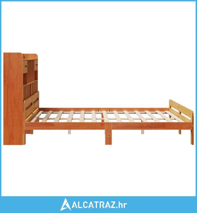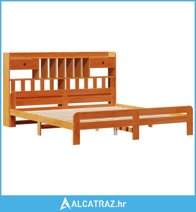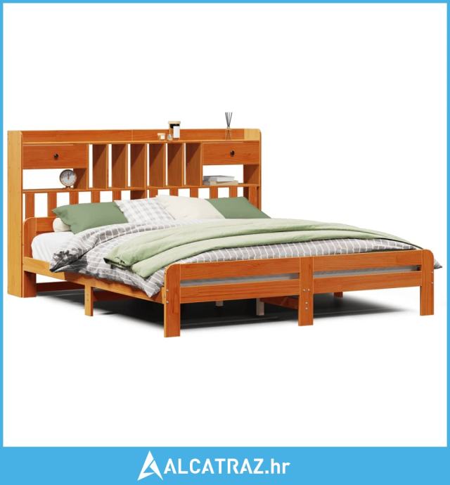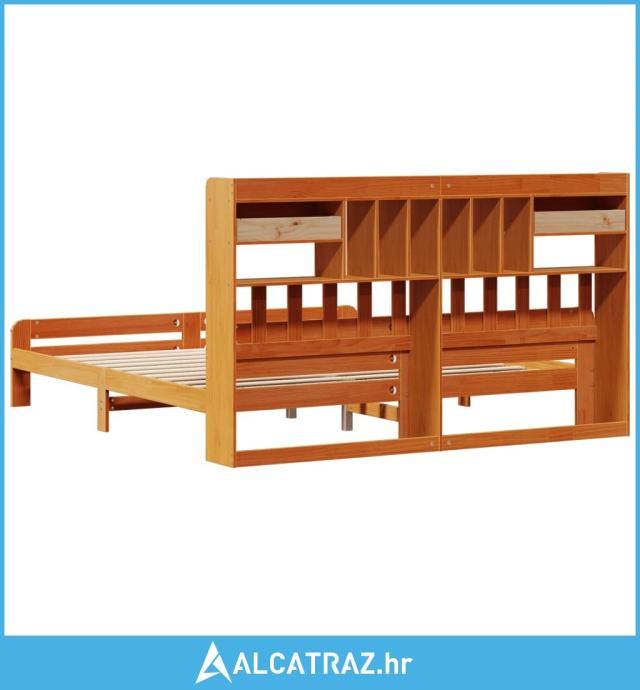 Krevet s regalom za knjige bez madraca 200x200 cm od borovine - NOVO