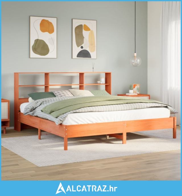 Krevet s regalom za knjige bez madraca 200x200 cm od borovine - NOVO