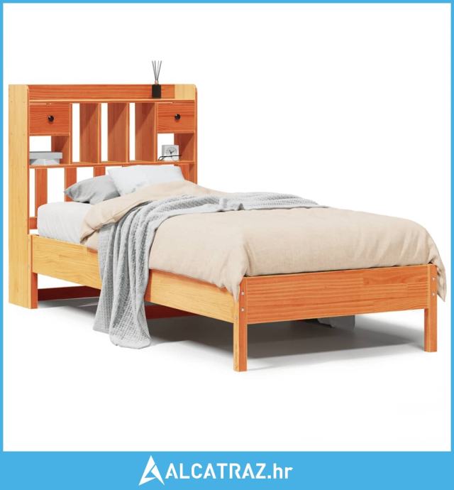 Krevet s regalom za knjige bez madraca 75 x 190 cm od borovine - NOVO