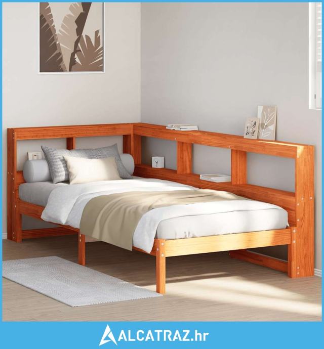 Krevet s regalom za knjige bez madraca 75 x 190 cm od borovine - NOVO