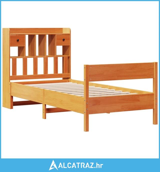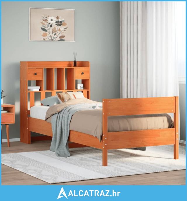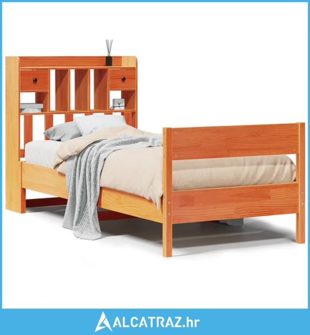 Krevet s regalom za knjige bez madraca 75 x 190 cm od borovine - NOVO