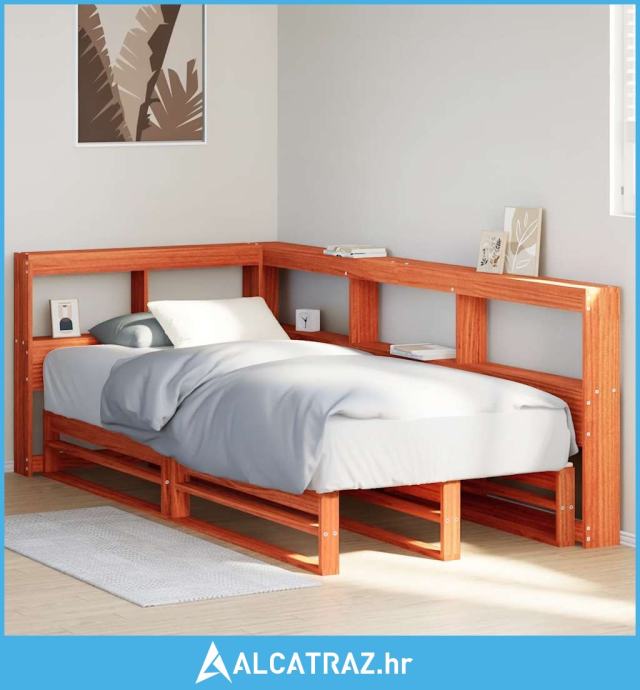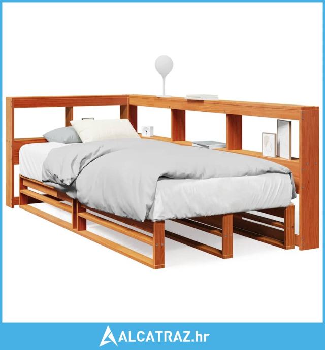 Krevet s regalom za knjige bez madraca 75 x 190 cm od borovine - NOVO