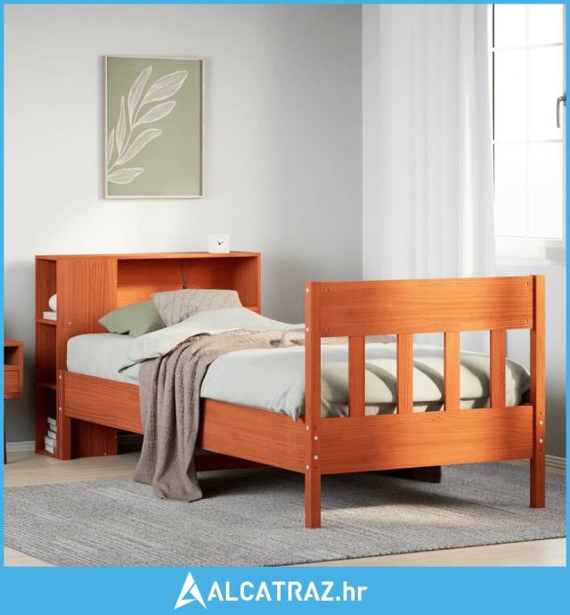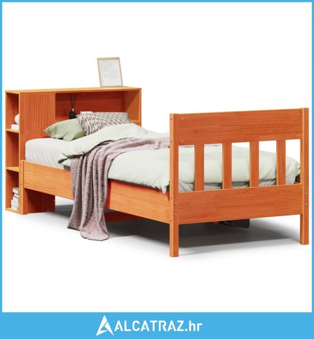 Krevet s regalom za knjige bez madraca 75 x 190 cm od borovine - NOVO