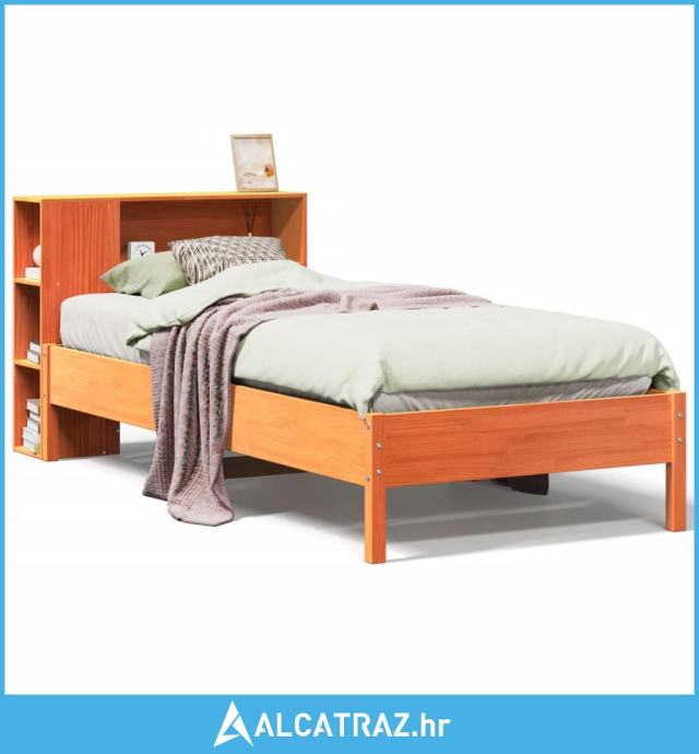 Krevet s regalom za knjige bez madraca 75 x 190 cm od borovine - NOVO