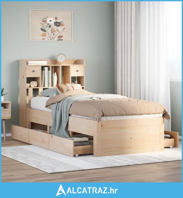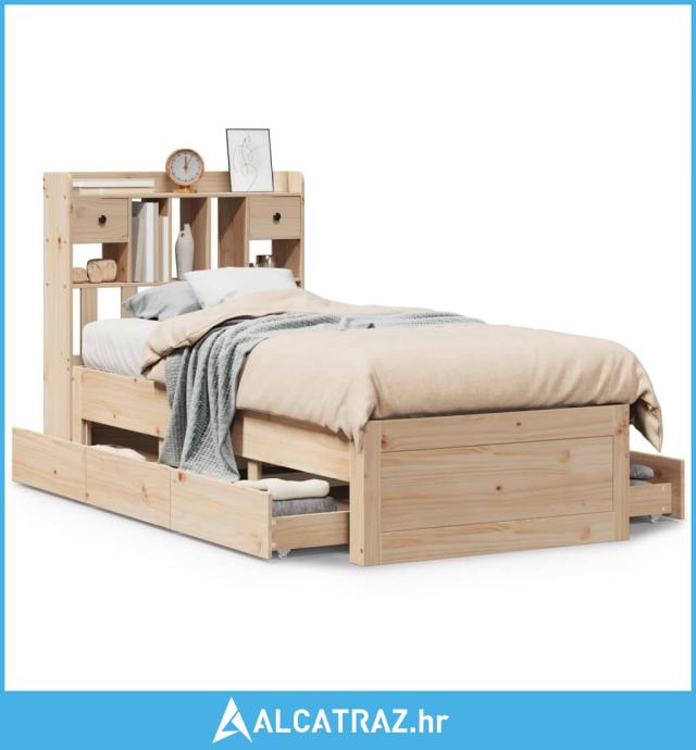 Krevet s regalom za knjige bez madraca 75x190 cm borovina - NOVO