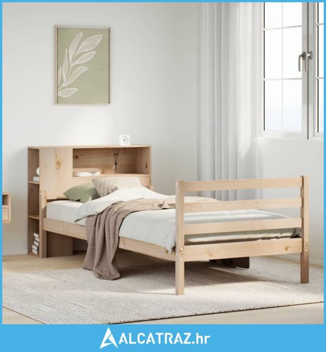 Krevet s regalom za knjige bez madraca 90x200 cm od borovine - NOVO