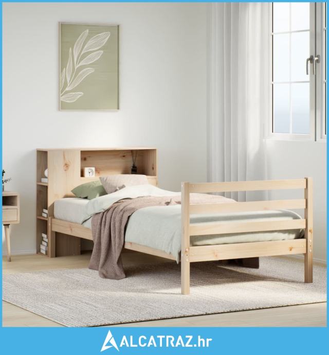 Krevet s regalom za knjige bez madraca 90x200 cm od borovine - NOVO