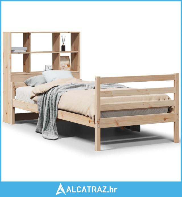 Krevet s regalom za knjige bez madraca 90x200 cm od borovine - NOVO