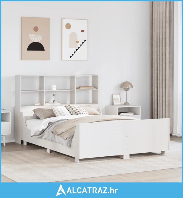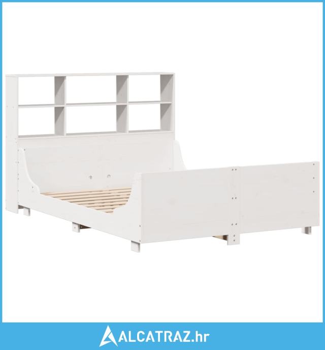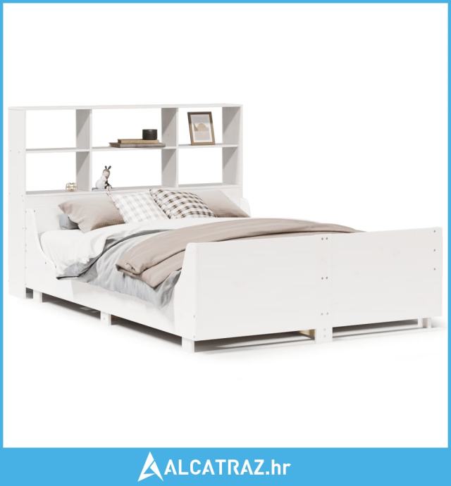 Krevet s regalom za knjige bez madraca bijeli 140x200cm od drva - NOVO