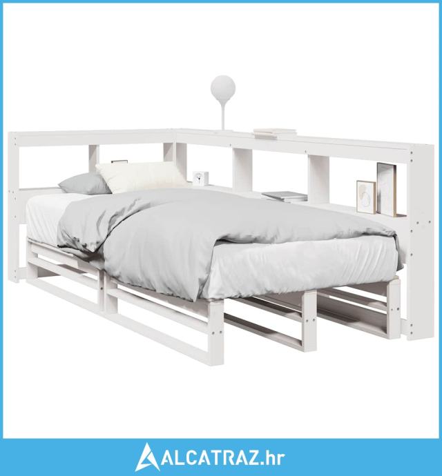 Krevet s regalom za knjige bez madraca bijeli 75x190cm borovina - NOVO