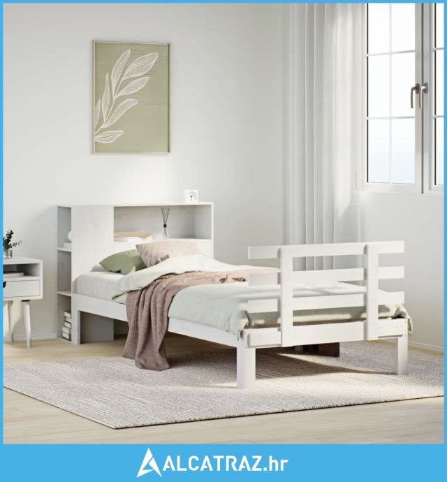 Krevet s regalom za knjige bez madraca bijeli 75x190cm borovina - NOVO