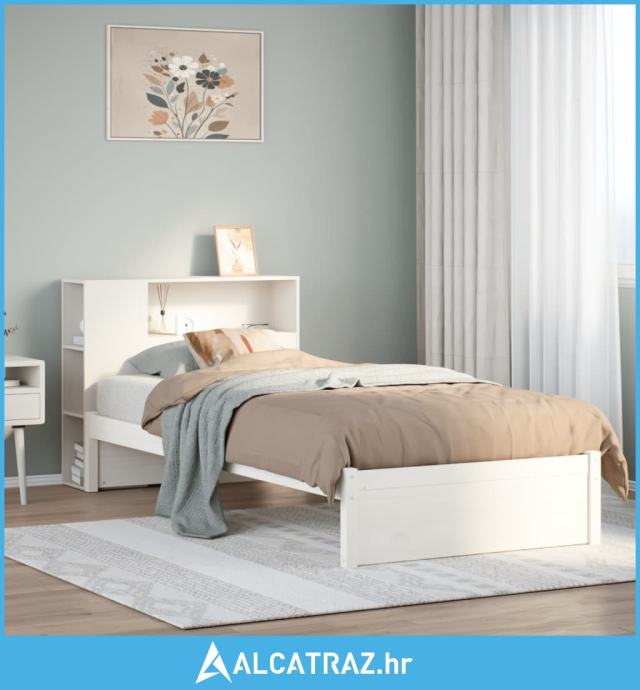 Krevet s regalom za knjige bez madraca bijeli 90x190cm borovina - NOVO