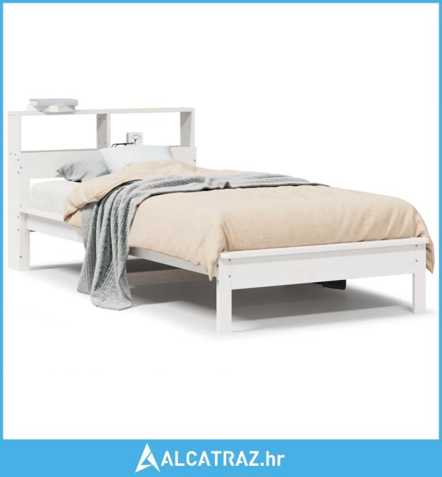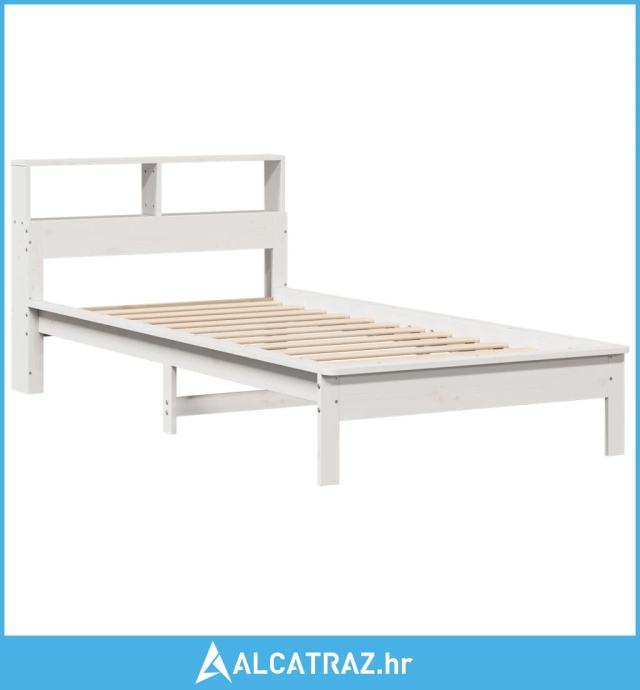 Krevet s regalom za knjige bez madraca bijeli 90x200cm borovina - NOVO