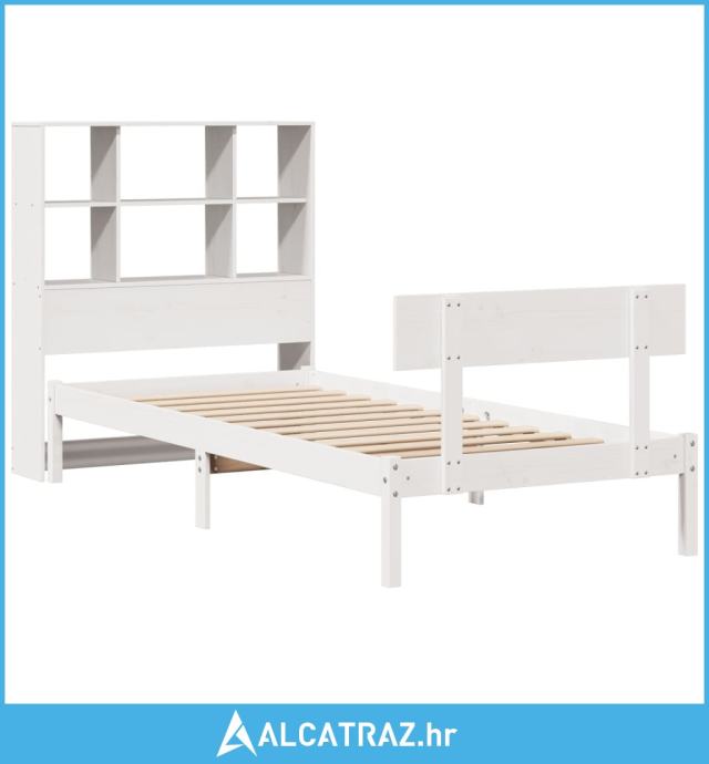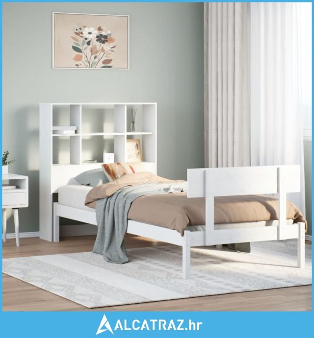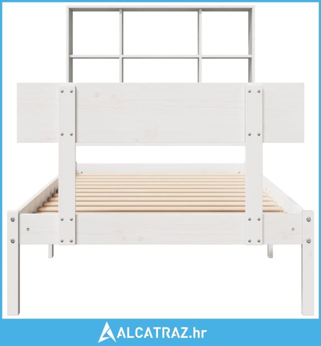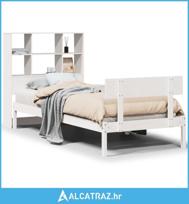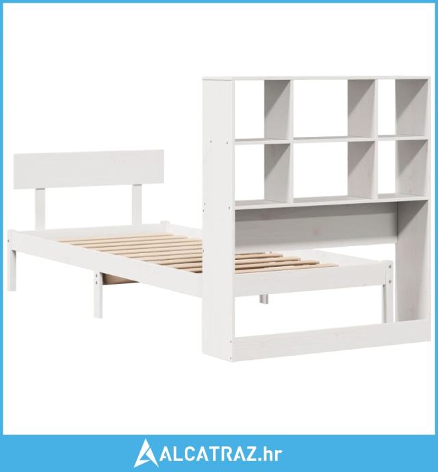 Krevet s regalom za knjige bez madraca bijeli 90x200cm borovina - NOVO