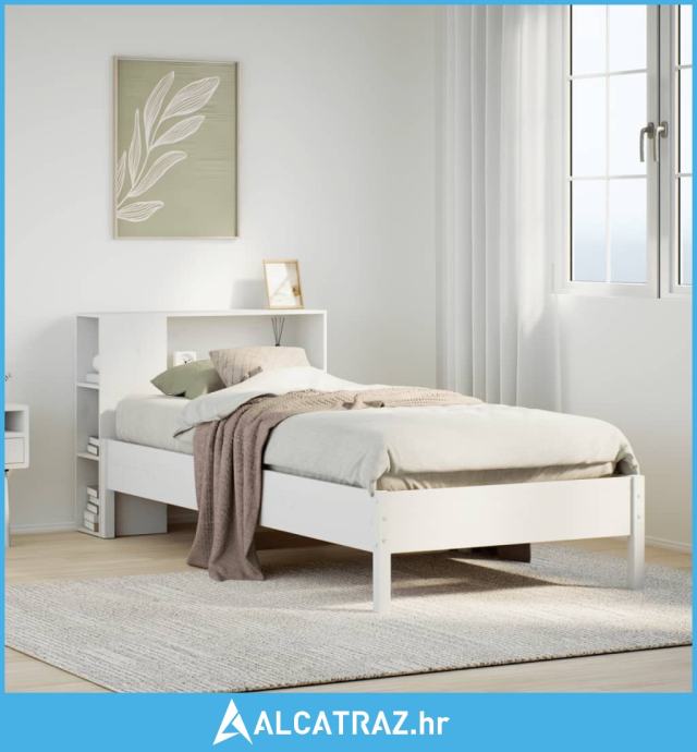 Krevet s regalom z knjige bez madraca bijeli 100x200cm borovina - NOVO
