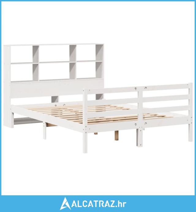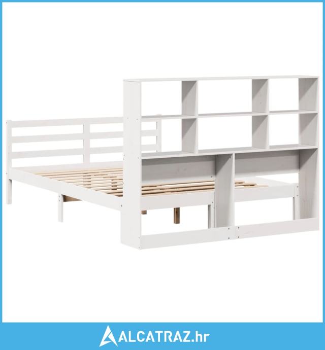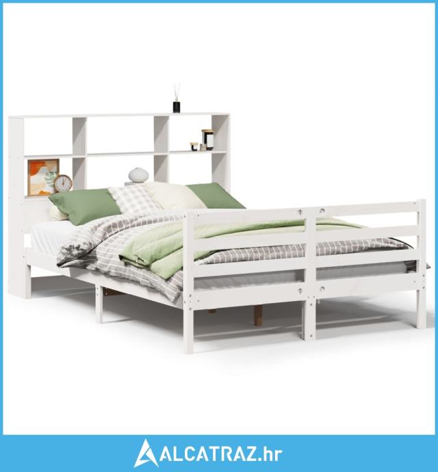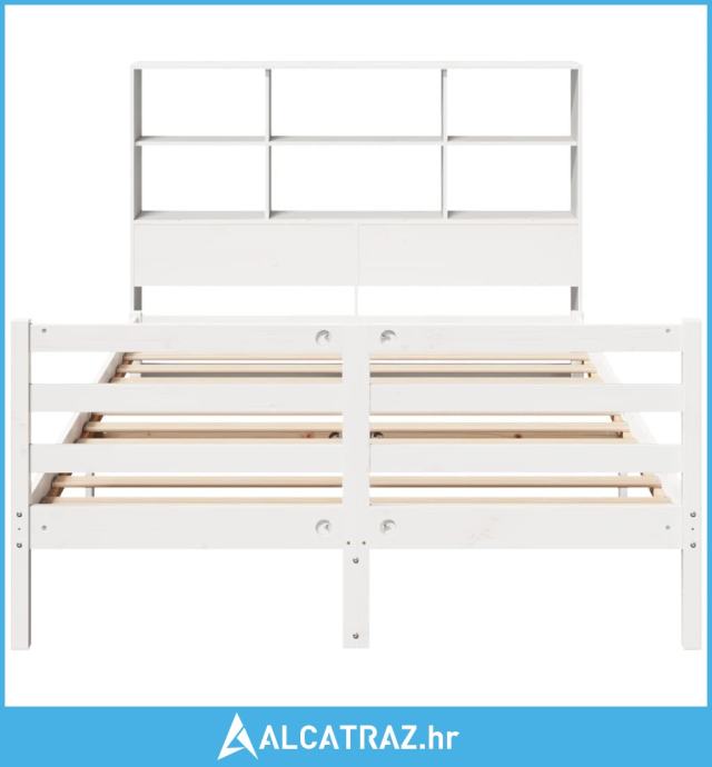 Krevet s regalom z knjige bez madraca bijeli 120x190cm borovina - NOVO