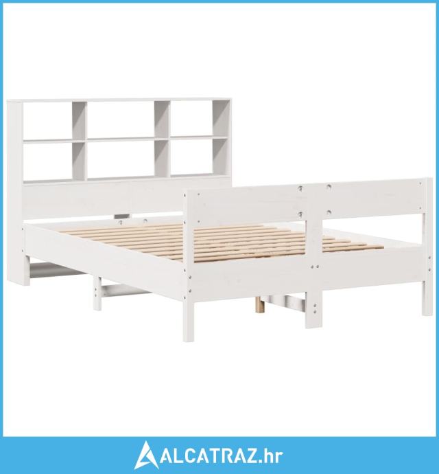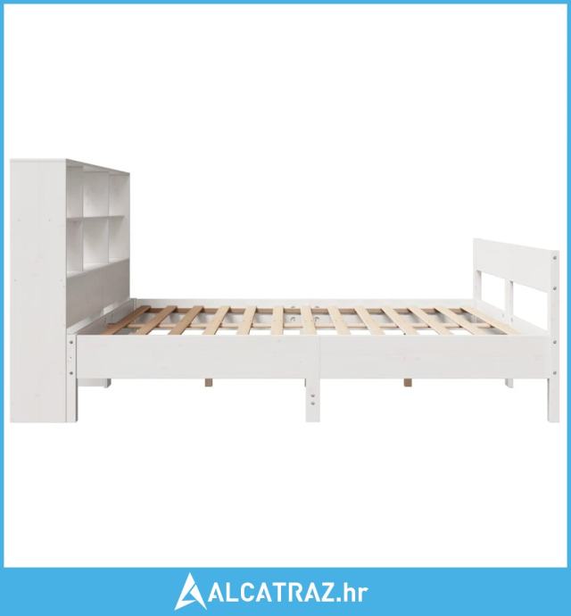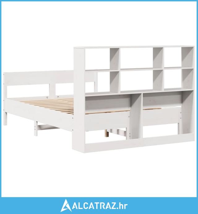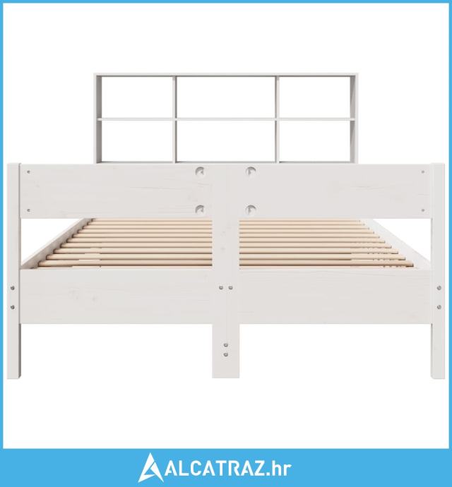 Krevet s regalom z knjige bez madraca bijeli 120x190cm borovina - NOVO