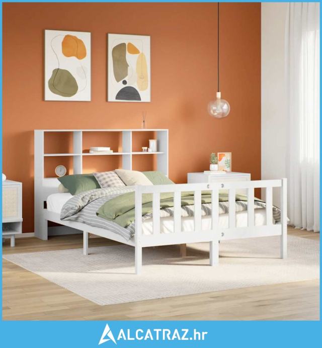 Krevet s regalom z knjige bez madraca bijeli 120x190cm borovina - NOVO