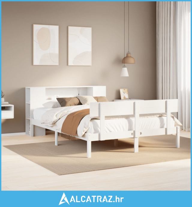 Krevet s regalom z knjige bez madraca bijeli 120x190cm borovina - NOVO