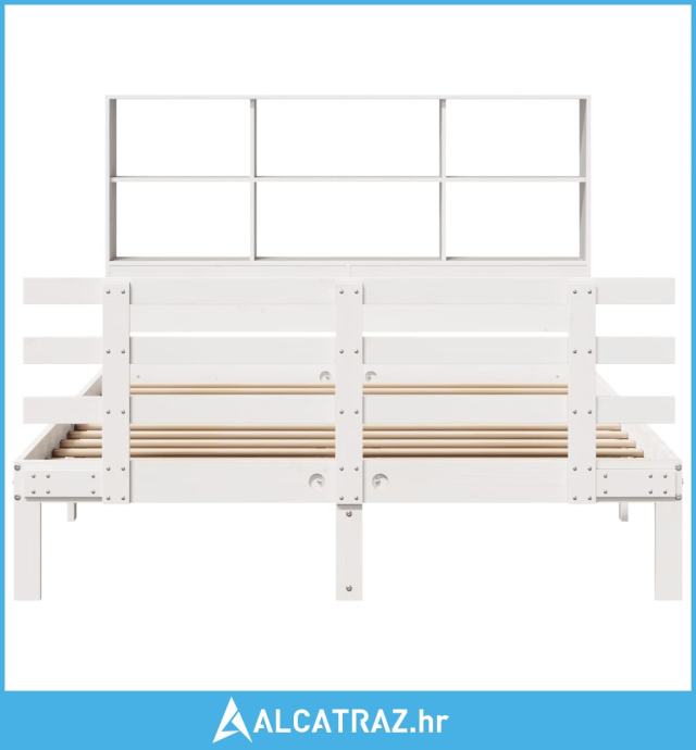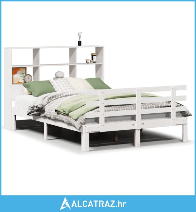 Krevet s regalom z knjige bez madraca bijeli 120x200cm borovina - NOVO