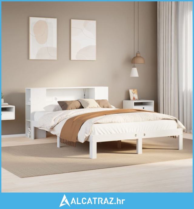 Krevet s regalom z knjige bez madraca bijeli 135x190cm borovina - NOVO