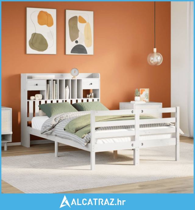 Krevet s regalom z knjige bez madraca bijeli 135x190cm borovina - NOVO