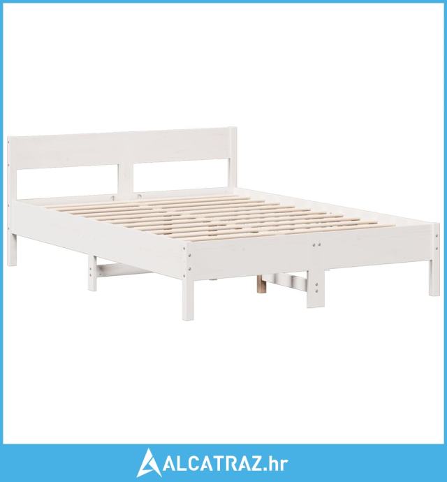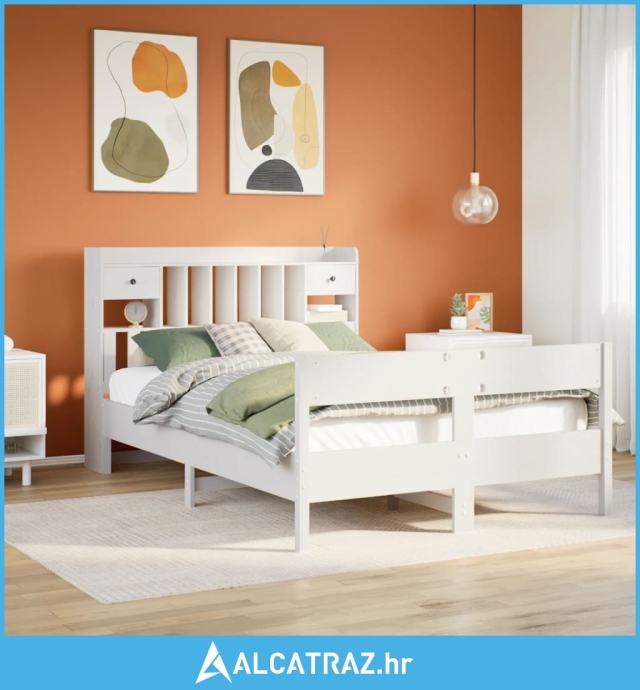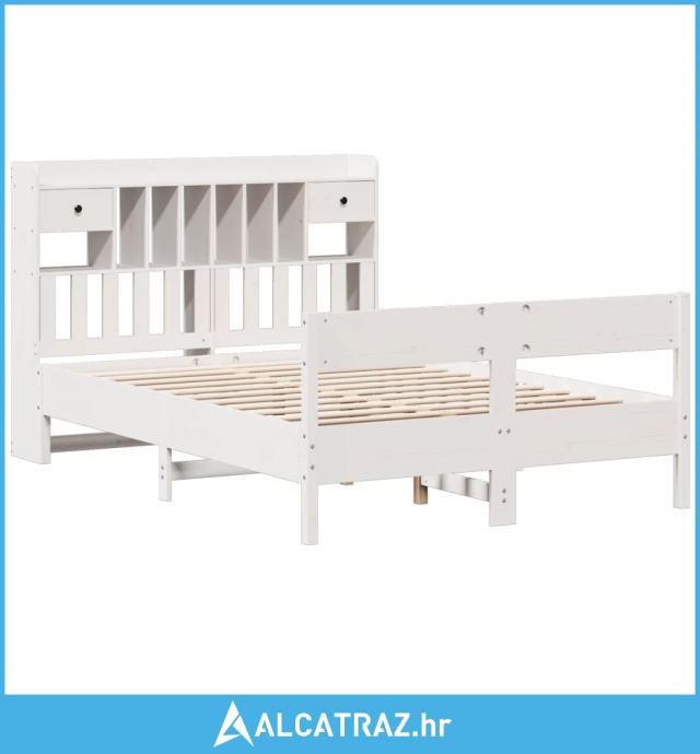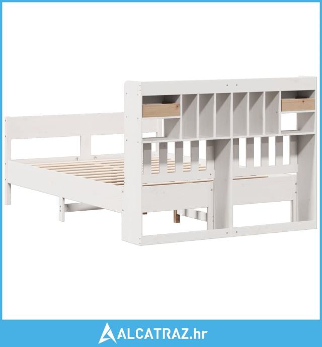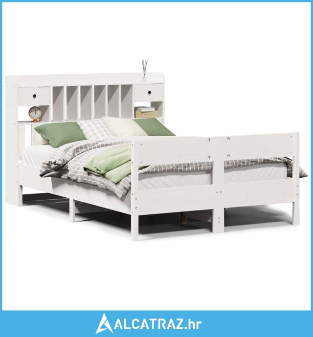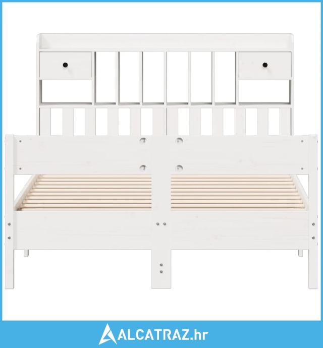 Krevet s regalom z knjige bez madraca bijeli 140x190cm borovina - NOVO