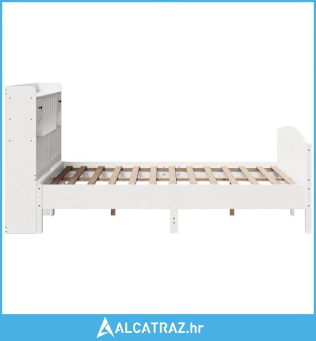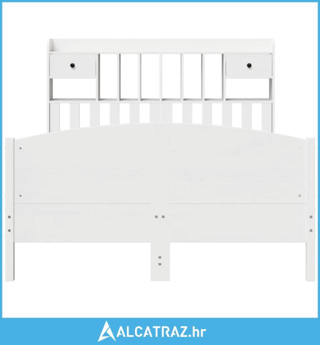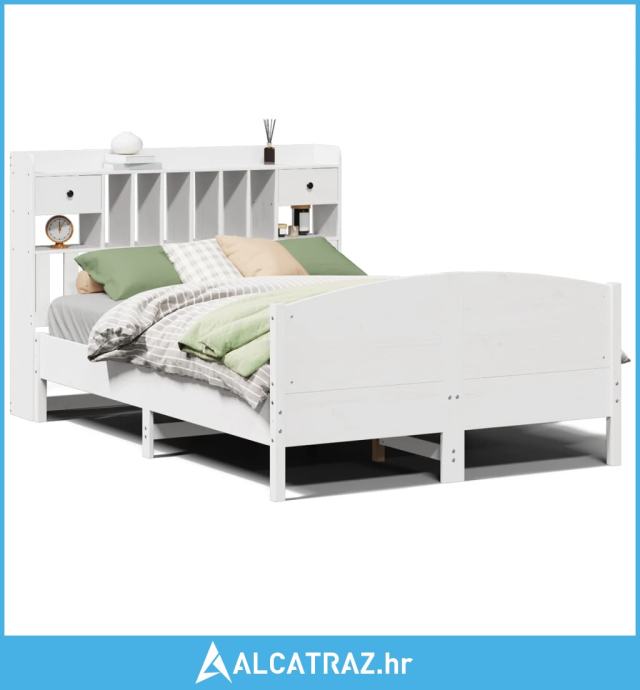 Krevet s regalom z knjige bez madraca bijeli 140x190cm borovina - NOVO