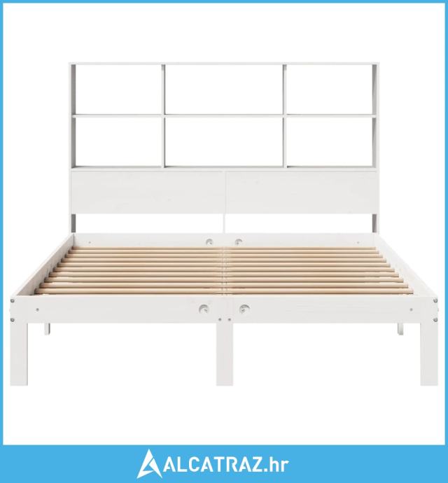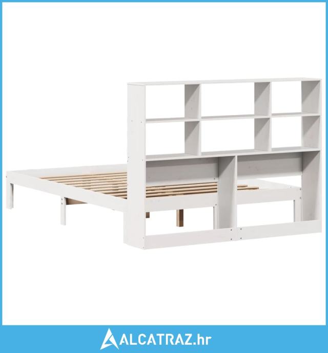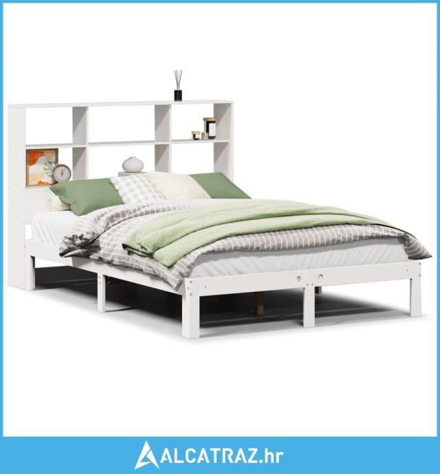 Krevet s regalom z knjige bez madraca bijeli 140x190cm borovina - NOVO