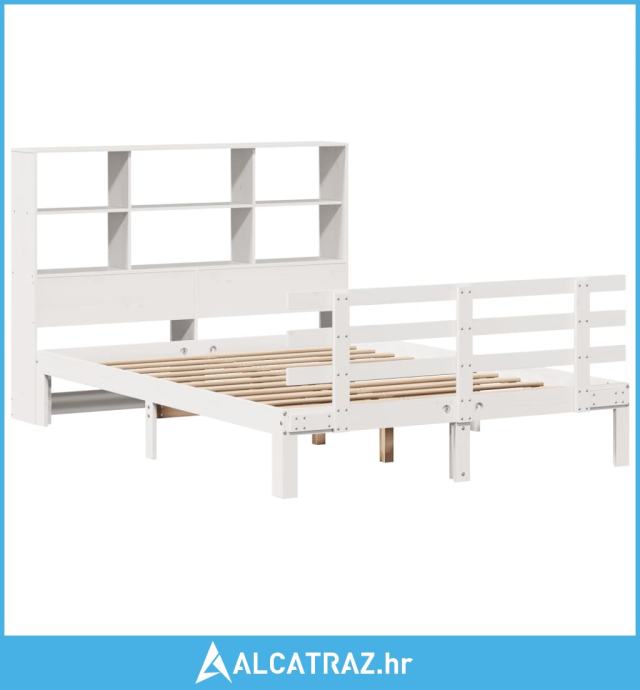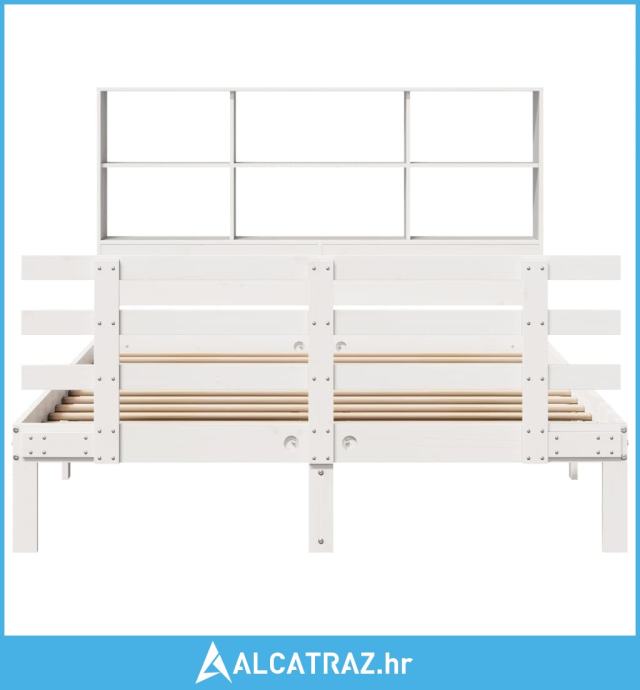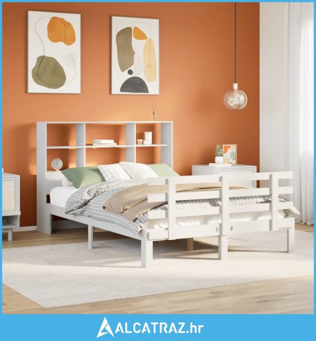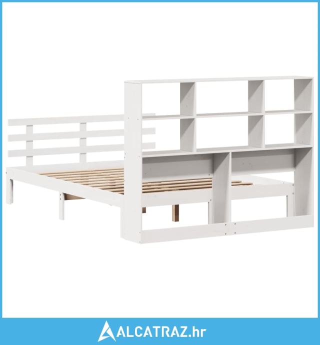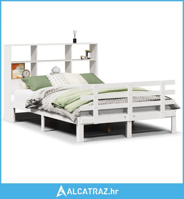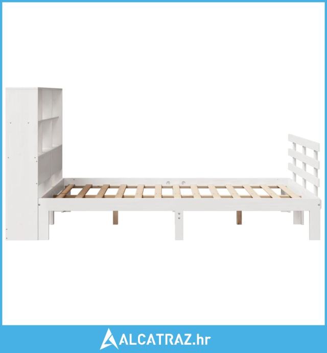 Krevet s regalom z knjige bez madraca bijeli 140x190cm borovina - NOVO