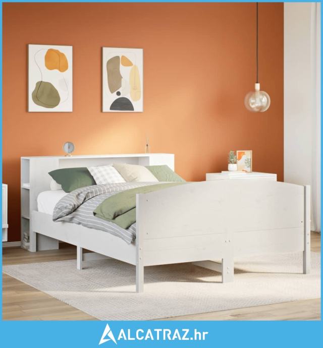 Krevet s regalom z knjige bez madraca bijeli 140x190cm borovina - NOVO