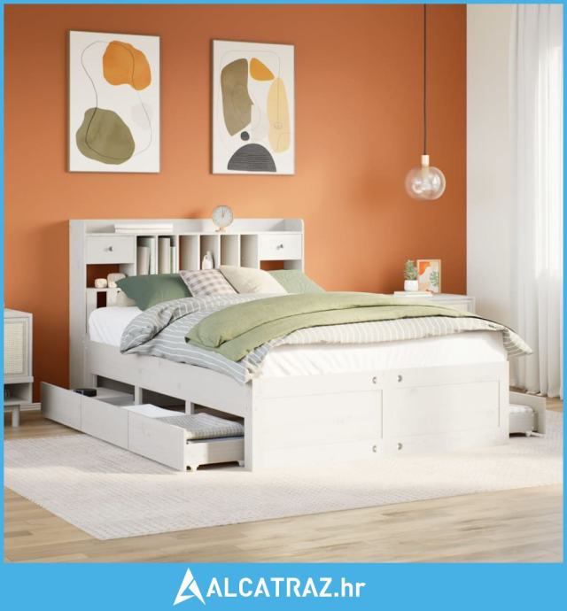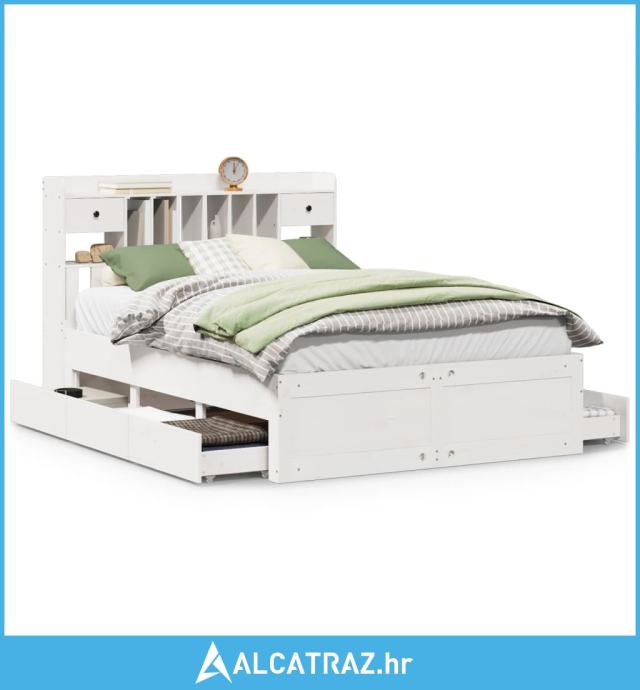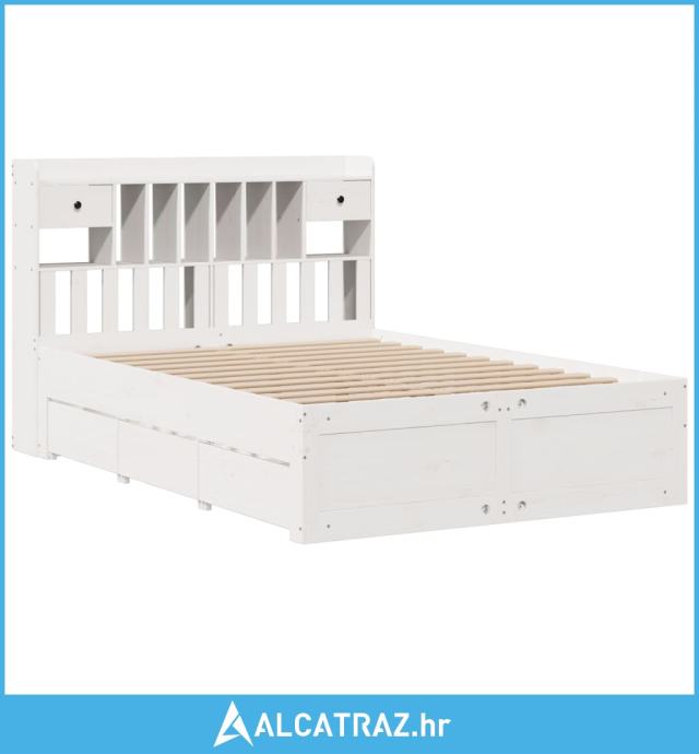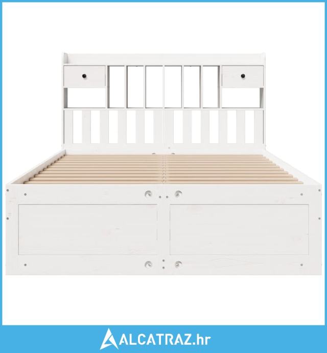 Krevet s regalom z knjige bez madraca bijeli 140x200cm borovina - NOVO