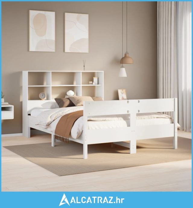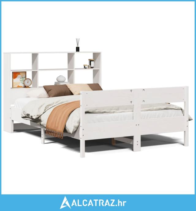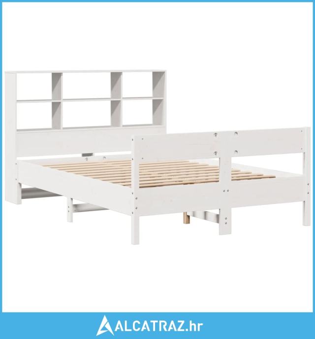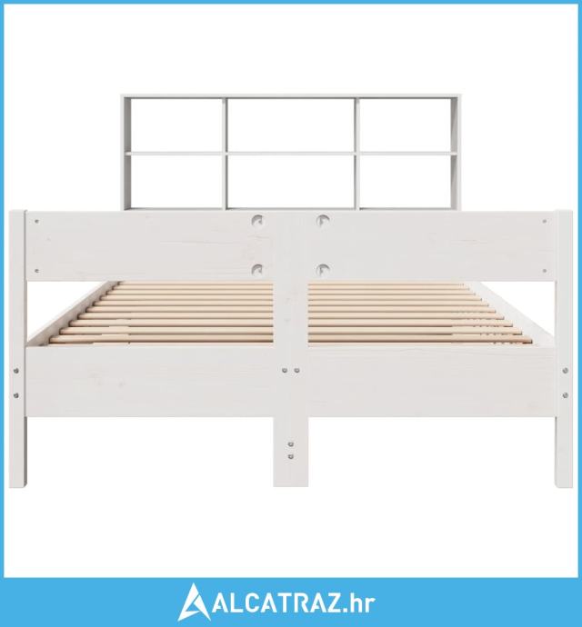 Krevet s regalom z knjige bez madraca bijeli 140x200cm borovina - NOVO