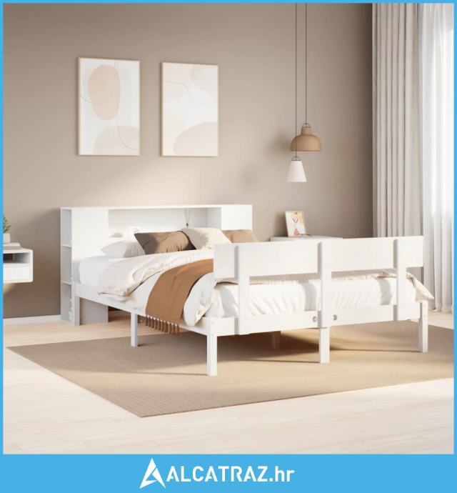 Krevet s regalom z knjige bez madraca bijeli 140x200cm borovina - NOVO