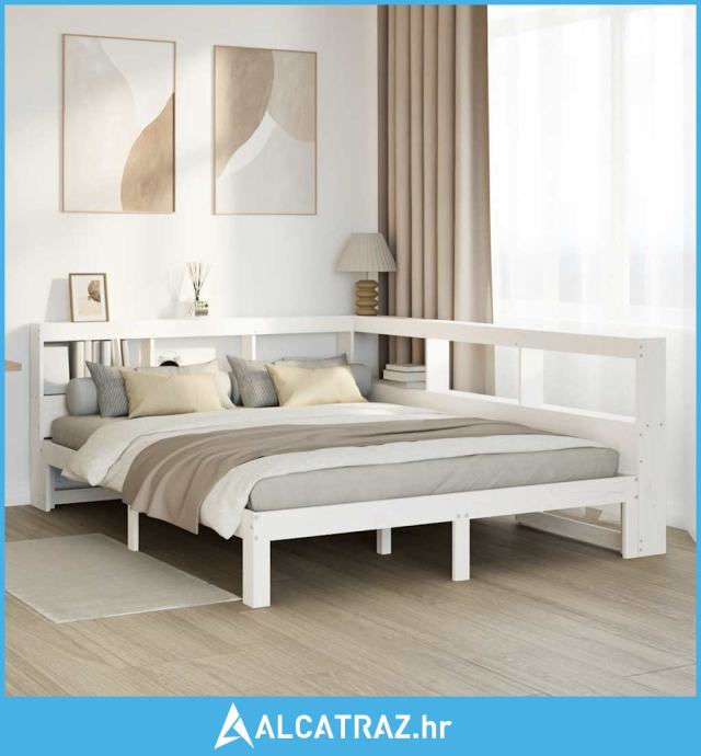 Krevet s regalom z knjige bez madraca bijeli 150x200cm borovina - NOVO