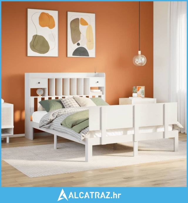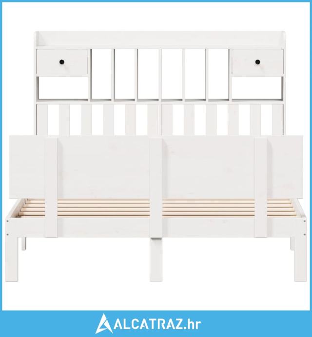 Krevet s regalom z knjige bez madraca bijeli 160x200cm borovina - NOVO