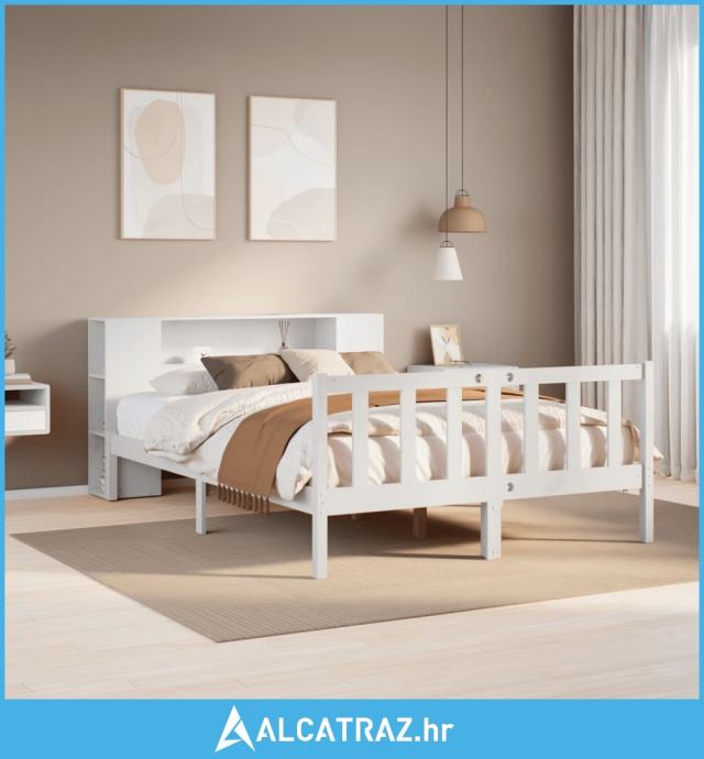 Krevet s regalom z knjige bez madraca bijeli 160x200cm borovina - NOVO