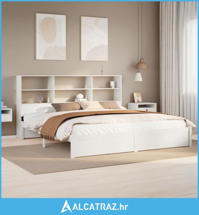 Krevet s regalom z knjige bez madraca bijeli 180x200cm borovina - NOVO
