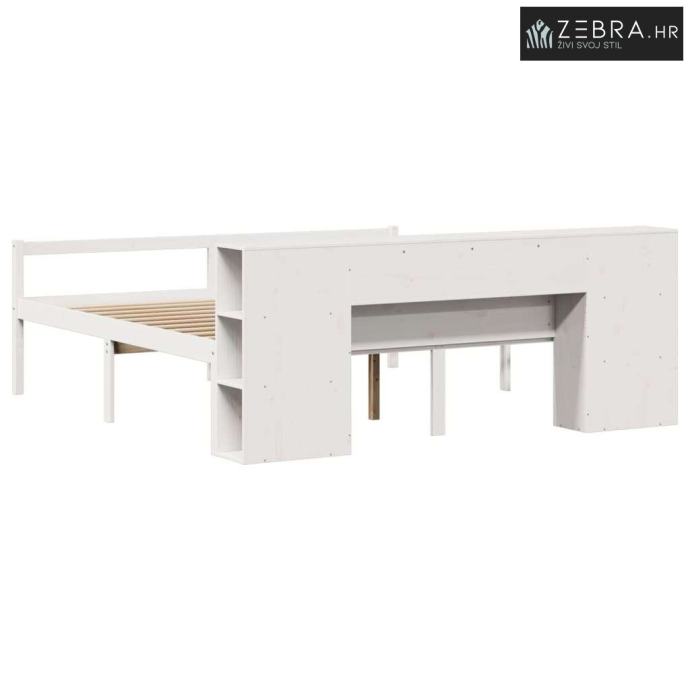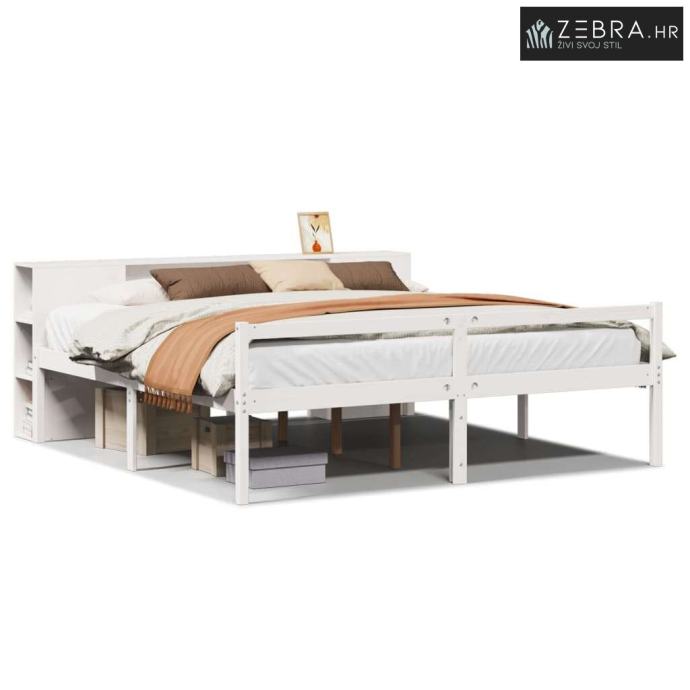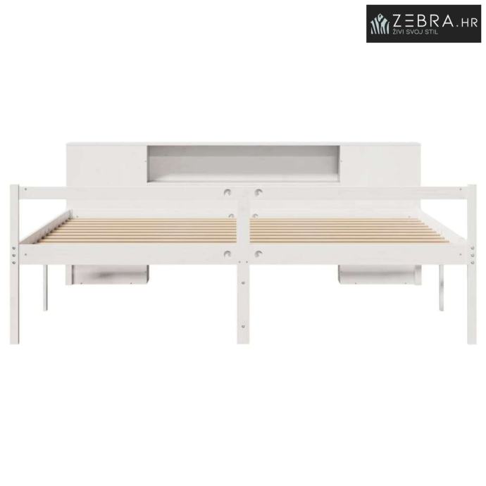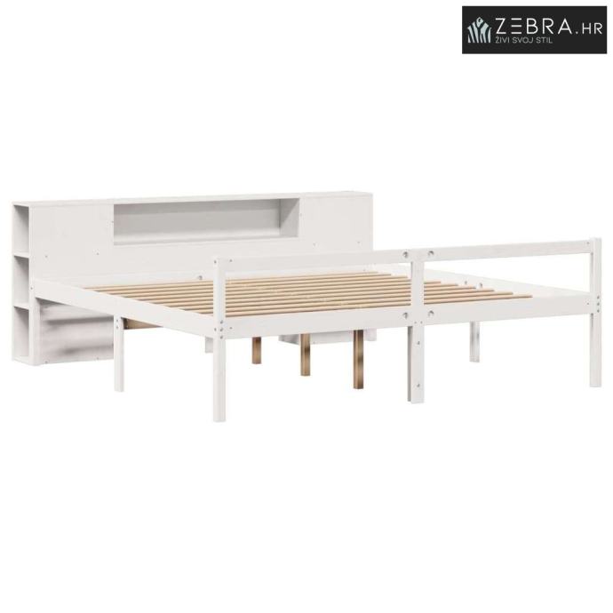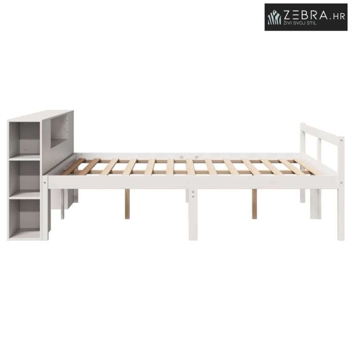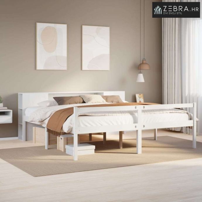 Krevet s regalom z knjige bez madraca bijeli 200x200cm borovina - Bije