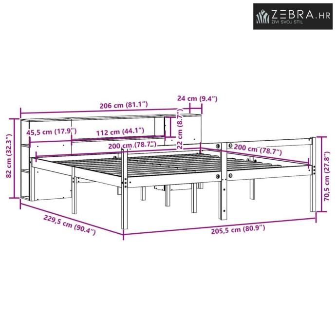 Dimenzije: 206 x 24 x 82 cm (Š x D x V)