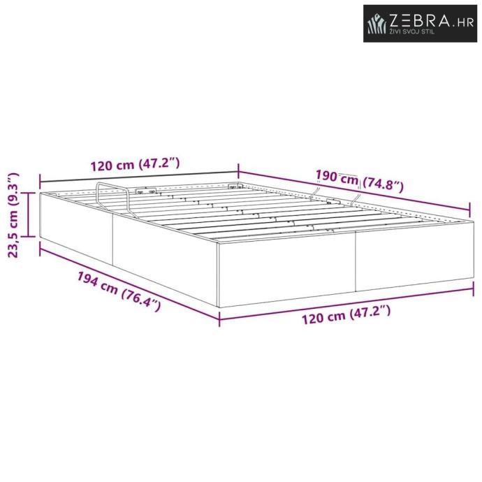 Veličina madraca: Mali dvostruki (120 cm x 200 cm / 47" x 79")