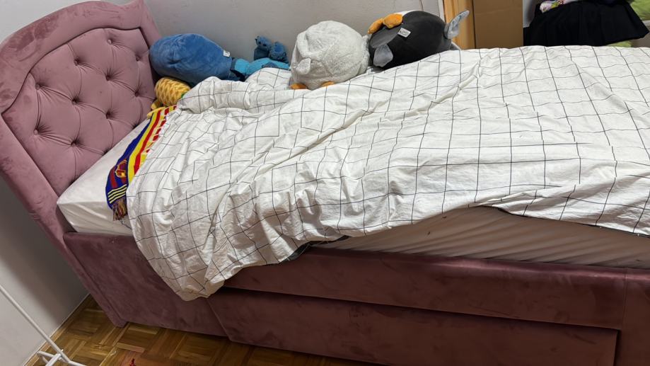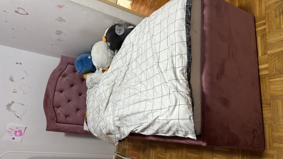 Tapecirani krevet s viskom uzglavljem dimenzije 80*200 i madrac prodajem. Podnica nije uključena u cijenu. Moguć dogovor oko cijene.