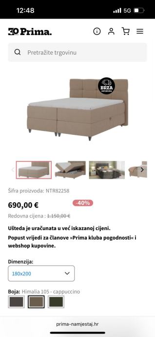 Prodaje se krevet 180x200. Cappucino boja, naziv tina 2. Kupljen u primi prije par mjeseci, prodaje se radi selidbe.