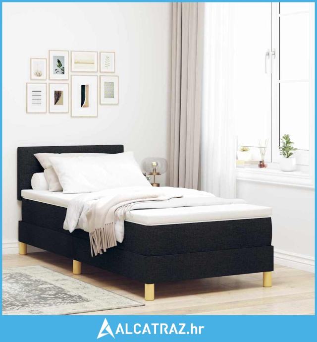 Krevet s uzglavljem i madracem crne boje 90x190 cm tkanina - NOVO