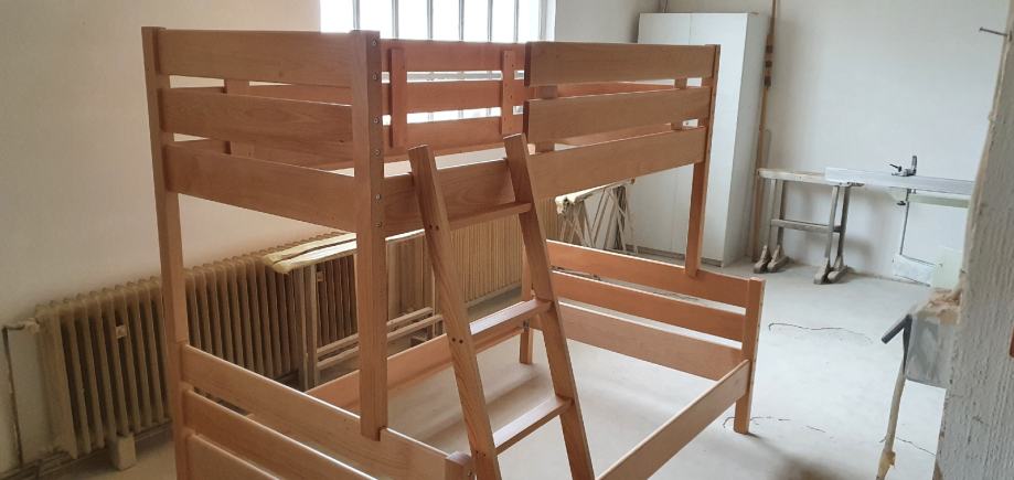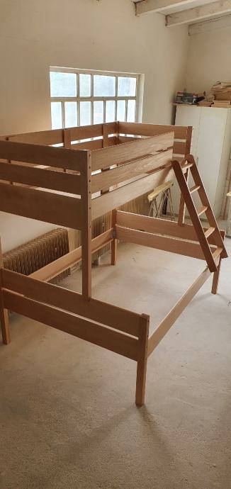 KREVETI 200/190 X 180/160/140/120 NOVI,RUČNI RAD,OD PARENE BUKVE,LAKIRANI,JEDNOSTAVNI ZA MONTAŽU,SA METALNIM KUTNICIMA NA STRANICAMA