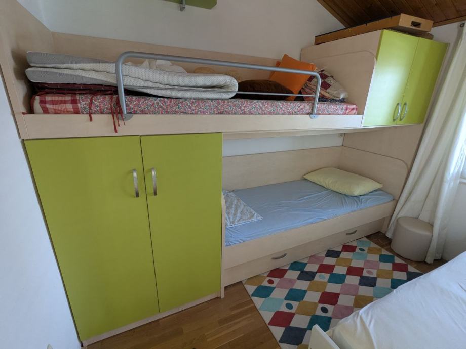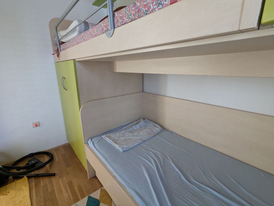 Prodaje se krevet na kat. Dimenzija madraca 80 cm x 200 cm. Ukupna duljina kreveta s ormarima 310 cm. U sklopu kreveta su i skale.