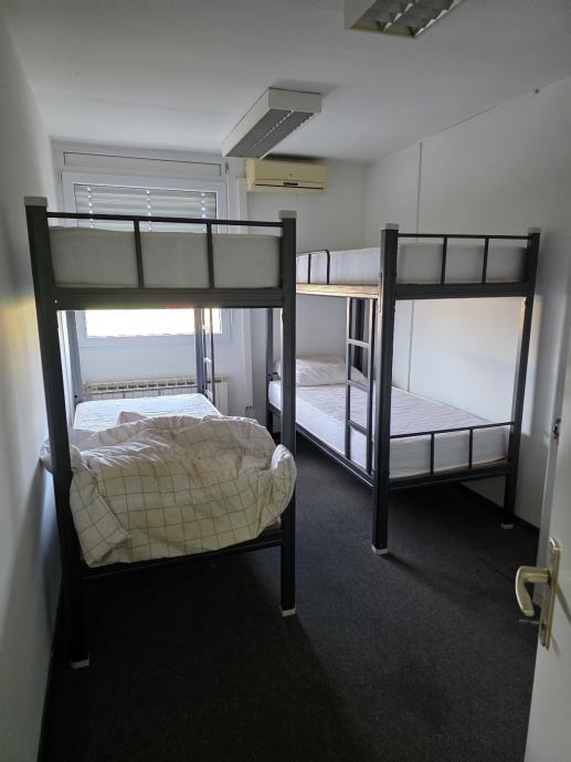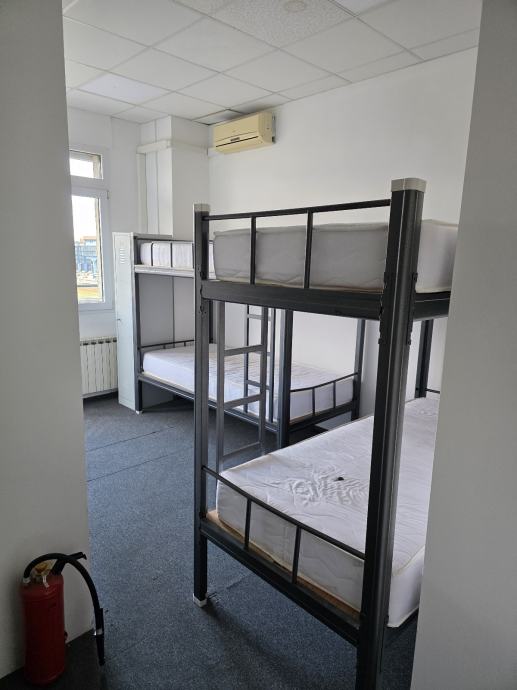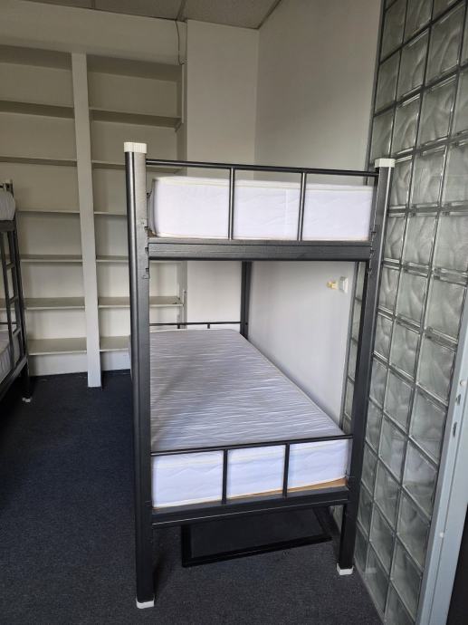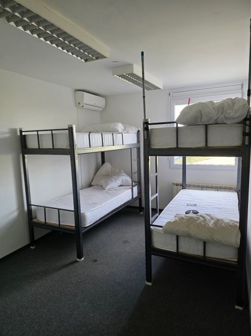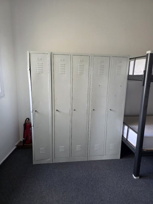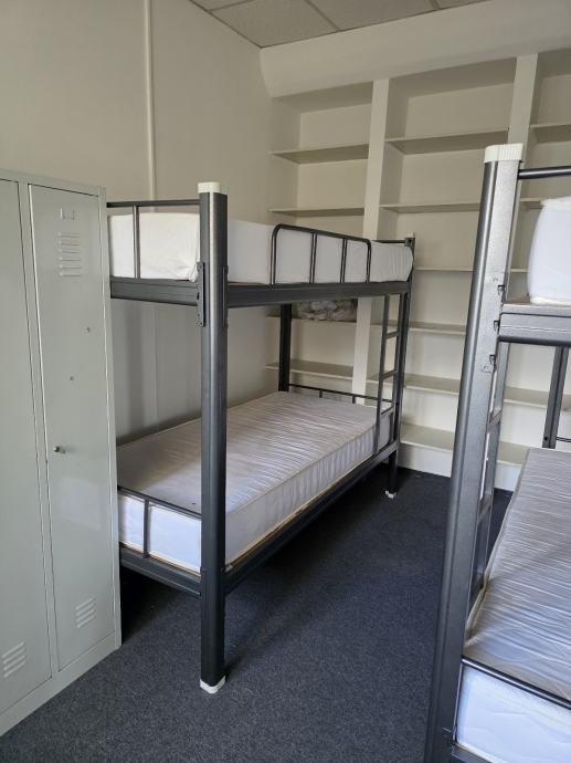 Prodajem 15 kreveta na kat (30 ležajeva) sa madracima, 40 metalnih ormarića, 2 veš mašine, 2 frižidera i novu inox kuhinju.
