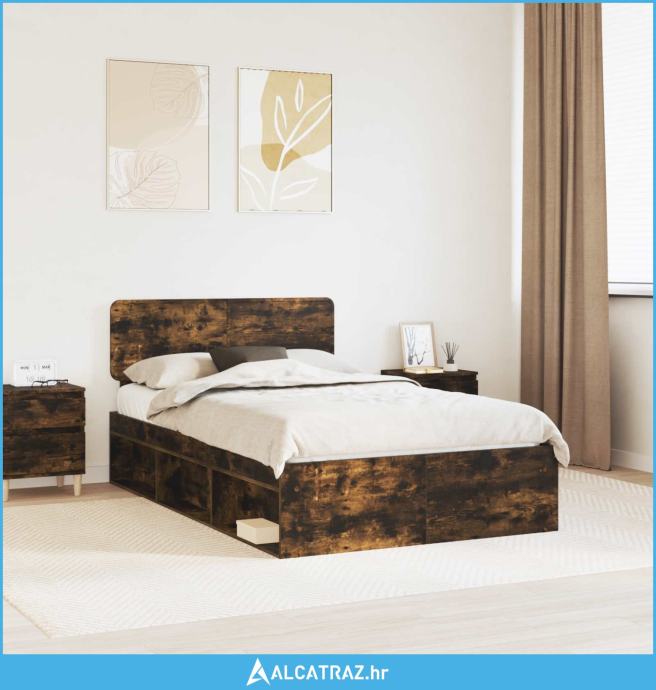Krevetna konstrukcija s uzglavljem Dimljeni hrast 120 x 190 cm - NOVO
